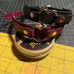 Heart ring bondage collar. Made of high-quality leather and sealed with a protective finish. 1" wide with 1/2" buckle closure.